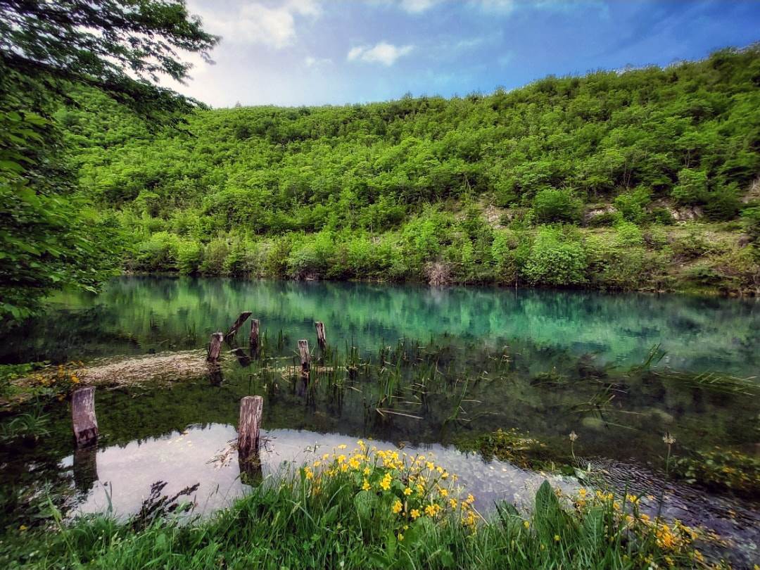 The Ribnik River is formed by the confluence of three abundant karst springs, which create a strong water flow immediately after merging. The spring zone is surrounded by the slopes of nearby hills, while the river valley of one of the cleanest rivers in Europe offers an idyllic natural setting.